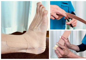 当院では主として伸縮性テープを用いたテーピングを行います。患部の疼痛軽減、安静・保護といった一般的なテーピングの機能はもちろん、テープの張り方を工夫することにより、施術効果の持続力アップやパフォーマンスアップを考慮しています。